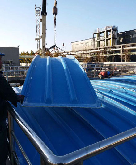 用于污水池和氧化溝的密封,防止臭氣散發(fā)。在蓋板上設(shè)排氣口,將臭氣用管道引出至除臭設(shè)備。